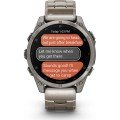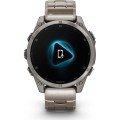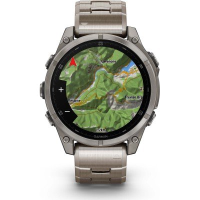 De Garmin Fenix 8 is een premium multisport smartwatch dat is ontworpen voor atleten, sport- en outdoorliefhebbers. Het biedt een ideale balans tussen prestaties, levensduur van de batterij en connectiviteit. Dit model biedt geavanceerde gepersonaliseerde trainingsfuncties, met meer dan 30 sportmodules waaronder hardlopen, fietsen, zwemmen, skiën, duiken tot 40 m, yoga, HIIT en 4- tot 6-weekse plannen specifiek voor sport, met monitoring van belasting, herstel en kwaliteit van de prestaties. Met deze Garmin is het eenvoudig om VO₂ max, grondcontacttijd, paslengte en dagelijkse suggesties te monitoren om de training te optimaliseren. Navigatie en GPS zijn inbegrepen. Multi-band GPS met SatIQ™, voorgeïnstalleerde TopoActive kaarten met NextFork™ gids voor uitstapjes en routes. Met deze Garmin is het mogelijk om routes te plannen op basis van afstand of tijd met behulp van Dynamic Round-Trip Routing. Met geïntegreerde Garmin Pay voor contactloze betalingen, offline muziek, ondersteuning voor Spotify, Deezer en Amazon Music. Dit model biedt gezondheids- en welzijnsmonitoring met Pulse Ox, Body Battery™, slaapkwaliteit en slaapmonitoring. Het biedt ook HRV-status, jetlagbegeleiding en verbeterde slaapcoach. Waterdicht tot 100 meter diep, met lekvrije metalen knoppen voor duiken, het heeft een ingebouwde LED zaklamp met rood veiligheidslicht en synchronisatie met de cadans van het hardlopen. Via Garmin messenger biedt het offline communicatie in de verkenningsmodus. In de AMOLED-versie gaat de batterij tot 29 dagen mee in smartwatchmodus. In de versie op zonne-energie daarentegen gaat de batterij tot 48 dagen mee in smartwatchmodus en tot 92 uur in GPS-modus. Dit horloge heeft de mogelijkheid om duiken, diepte, daalsnelheid en desaturatiestops tot 40 m te volgen. Het heeft een ingebouwde microfoon en luidspreker: om te bellen en spraakopdrachten direct vanaf de pols te gebruiken.