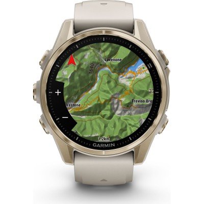 De Garmin Fenix 8 is een premium multisport smartwatch dat is ontworpen voor atleten, sport- en outdoorliefhebbers. Het biedt een ideale balans tussen prestaties, levensduur van de batterij en connectiviteit. Dit model biedt geavanceerde gepersonaliseerde trainingsfuncties, met meer dan 30 sportmodules waaronder hardlopen, fietsen, zwemmen, skiën, duiken tot 40 m, yoga, HIIT en 4- tot 6-weekse plannen specifiek voor sport, met monitoring van belasting, herstel en kwaliteit van de prestaties. Met deze Garmin is het eenvoudig om VO₂ max, grondcontacttijd, paslengte en dagelijkse suggesties te monitoren om de training te optimaliseren. Navigatie en GPS zijn inbegrepen. Multi-band GPS met SatIQ™, voorgeïnstalleerde TopoActive kaarten met NextFork™ gids voor uitstapjes en routes. Met deze Garmin is het mogelijk om routes te plannen op basis van afstand of tijd met behulp van Dynamic Round-Trip Routing. Met geïntegreerde Garmin Pay voor contactloze betalingen, offline muziek, ondersteuning voor Spotify, Deezer en Amazon Music. Dit model biedt gezondheids- en welzijnsmonitoring met Pulse Ox, Body Battery™, slaapkwaliteit en slaapmonitoring. Het biedt ook HRV-status, jetlagbegeleiding en verbeterde slaapcoach. Waterdicht tot 100 meter diep, met lekvrije metalen knoppen voor duiken, het heeft een ingebouwde LED zaklamp met rood veiligheidslicht en synchronisatie met de cadans van het hardlopen. Via Garmin messenger biedt het offline communicatie in de verkenningsmodus. In de AMOLED-versie gaat de batterij tot 29 dagen mee in smartwatchmodus. In de versie op zonne-energie daarentegen gaat de batterij tot 48 dagen mee in smartwatchmodus en tot 92 uur in GPS-modus. Dit horloge heeft de mogelijkheid om duiken, diepte, daalsnelheid en desaturatiestops tot 40 m te volgen. Het heeft een ingebouwde microfoon en luidspreker: om te bellen en spraakopdrachten direct vanaf de pols te gebruiken.