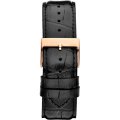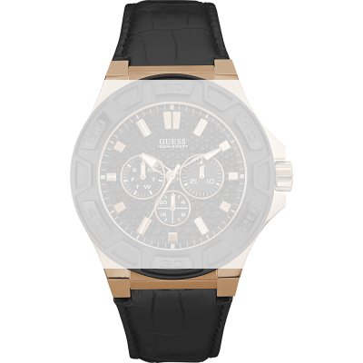 Dit Guess horlogebandje is gemaakt van leer en wordt aan het horloge bevestigd door middel van bandpennen. De band heeft een breedte van 27 mm en wordt gesloten door middel van een gesp. De band heeft geen rechte aanzet wat betekent dat deze band alleen geschikt is voor de horloges die hieronder worden vermeld.
