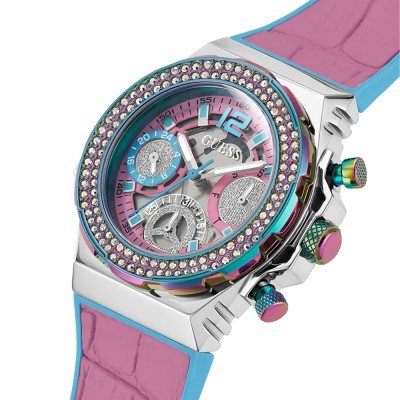 Dit Guess horloge heeft een kast gemaakt van Roestvrijstaal met een diameter van 36 mm en is voorzien van een Rubber band. In de kast bevindt zich een Seiko Instruments Inc. kwaliteitsuurwerk en is afgewerkt met Mineraalglas.