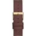 Dit Guess horlogebandje is gemaakt van leer en wordt aan het horloge bevestigd door middel van stalen pennen. De band heeft een breedte van 22 mm en wordt gesloten door middel van een gesp. De band heeft geen rechte aanzet wat betekent dat deze band alleen geschikt is voor de horloges die hieronder worden vermeld.