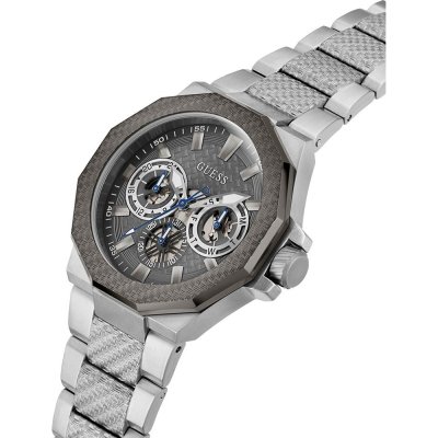 Dit Guess horloge heeft een kast gemaakt van Roestvrijstaal met een diameter van 45 mm en is voorzien van een Roestvrijstaal band. In de kast bevindt zich een Seiko Instruments Inc. kwaliteitsuurwerk en is afgewerkt met Mineraalglas.