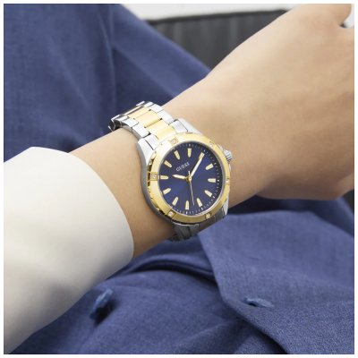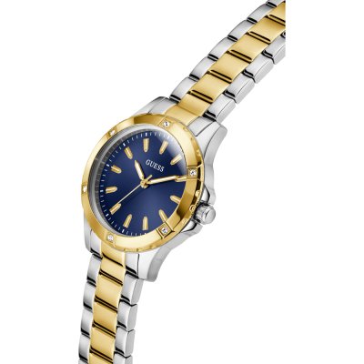 Dit Guess horloge heeft een kast gemaakt van Roestvrijstaal met een diameter van 35 mm en is voorzien van een Roestvrijstaal band. In de kast bevindt zich een Seiko kwaliteitsuurwerk en is afgewerkt met Mineraalglas.
