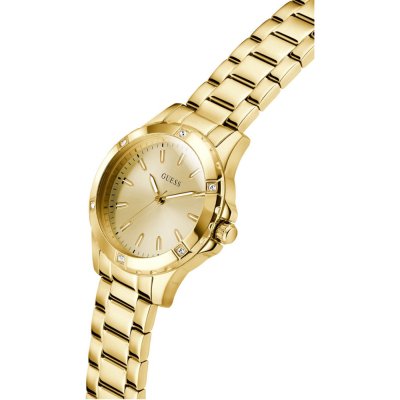 Dit Guess horloge heeft een kast gemaakt van Roestvrijstaal met een diameter van 35 mm en is voorzien van een Roestvrijstaal band. In de kast bevindt zich een Seiko kwaliteitsuurwerk en is afgewerkt met Mineraalglas.