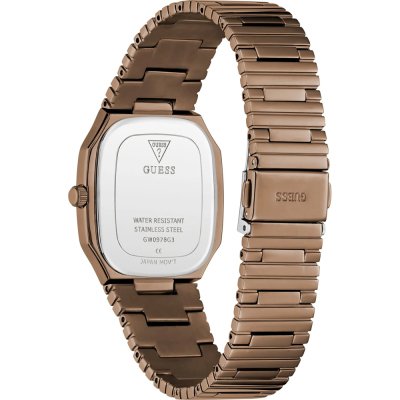 Dit Guess horloge heeft een kast gemaakt van Roestvrijstaal met een diameter van 35 mm en is voorzien van een Roestvrijstaal band. In de kast bevindt zich een Seiko Instruments Inc. kwaliteitsuurwerk en is afgewerkt met Mineraalglas.