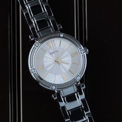 Dit Guess horloge heeft een kast gemaakt van Roestvrijstaal met een diameter van 30 mm en is voorzien van een Roestvrijstaal band. In de kast bevindt zich een Seiko kwaliteitsuurwerk en is afgewerkt met Mineraalglas.