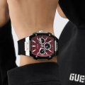 Dit Guess horloge heeft een kast gemaakt van Roestvrijstaal met een diameter van 43 mm en is voorzien van een Rubber band. In de kast bevindt zich een Seiko Instruments Inc. kwaliteitsuurwerk en is afgewerkt met Mineraalglas.
