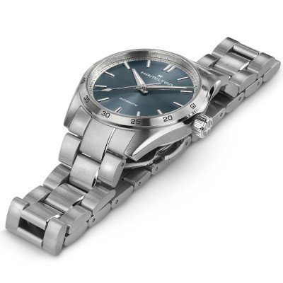 De nieuwe Performer horloge serie is een sportievere, moderne en dynamische toevoeging aan de Hamilton Jazzmaster lijn. Er zijn drie verschillende modellen; Een 42 mm chronograaf en een automatisch 3-wijzer horloge in 38 mm en deze 34 mm versie. Het horloge heeft een lunette met in blokjes van 5-minuten oplopende cijfers voor een sportieve toets op een verder vrij klassiek horloge. De lay-out van de wijzerplaat is duidelijk en met het dunnere Hamilton H-10 uurwerk (een geüpgradede versie van de betrouwbare ETA 2824) heeft de kast een slank en elegant profiel. Dit maakt de Jazzmaster Performer een ideaal horloge voor mensen die graag een alledaags gekleed horloge dragen dat niet te klassiek is in zijn 'look en feel'.