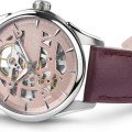 Om de schoonheid van deze Jazzmaster Skeleton voor dames volledig te kunnen waarderen, hoeft u alleen maar in te zoomen op de wijzerplaat. De uitsnijdingen passen bij de uurwerkonderdelen eronder, de kleur past bij de robijnen. Dit dameshorloge is verkrijgbaar met een roestvrijstalen schakelband of een leren band in bijpassende kleuren en is niet alleen intrigerend, maar ook elegant en bijzonder gedetailleerd en stijlvol.