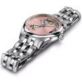 De prachtig uitgevoerde uitsparingen in de wijzerplaat hebben een hoogglans afschuining die scherp overgaat in een geborstelde binnenrand, waardoor het oog wordt gericht op het automatische H-10 uurwerk. Dit zeer nauwkeurige Hamilton uurwerk bevat een niet-magnetische Nivachron balansveer en heeft een gangreserve van maar liefst 80 uur.