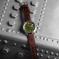De Khaki Pilot Day-Date is het schoolvoorbeeld van een klassiek pilotenhorloge en een waardevolle toevoeging aan de Khaki Aviation collectie. Het horloge heeft een relatief dunne lunette op een 42 mm kast die extra veel ruimte laat voor de helder vormgegeven wijzerplaat. De zwaardvormige skelet-uurwijzer onthult het uur op een slimme manier in de middelste ring van de wijzerplaat, terwijl de minutenwijzer met de lumenpunt naar de vergrote cijfers in de buitenste ring wijst. Een lichtgevende driehoek op 12 uur en lichtgevende indexen op 3, 6 en 9 uur voegen een retro aviator element toe aan de zeer goed leesbare wijzerplaat. Dit horloge wordt aangedreven door het H-30 automatische uurwerk met een gangreserve van 80 uur en een Nivachron™ balansveer en heeft verder een dag-datum venster op 3 uur. Zo'n cool en slim in elkaar gezet horloge!