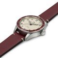De Khaki Pilot Pioneer is een eerbetoon aan het Model 23, een zakhorloge gebruikt door Amerikaanse soldaten tijdens de Tweede Wereldoorlog, waarvan Hamilton er meer dan 27.000 leverde! Van de getextureerde witte wijzerplaat en de kathedraalwijzers tot de groene bezel en bijpassende leren band, elk detail doet denken aan de afkomst van dit horloge. Het geeft de geest weer van de pionierende vliegeniers uit de oorlog, terwijl het tegelijkertijd moderne betrouwbaarheid en een trendy retrogevoel uitstraalt. Hamilton's kaliber H10 (gebaseerd op de betrouwbare ETA 2824) biedt een flinke gangreserve van 80 uur. De wijzerplaat met eierschaalwitte korrelstructuur heeft Arabische cijfers, een 'spoorweg' minutenbaan en vernikkelde kathedraalwijzers. SuperLuminova op zowel de wijzers als de bezelmarkeringen zorgen voor zichtbaarheid bij weinig licht. Het krasbestendige saffierglas benadrukt de retro-uitstraling van het horloge. Deze esthetiek wordt nog verder versterkt door de groene aftelring met mineraalglas inleg, die qua kleur past bij de soepele leren horlogeband. Met 38 mm draagt het horloge comfortabel om de meeste polsen. Dus of u nu een liefhebber bent van de geschiedenis van de luchtvaart of iemand die een elegant horloge in militaire stijl waardeert, de Khaki Pilot Pioneer ziet er goed uit, voelt goed aan en is zeer betrouwbaar.