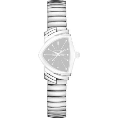 Dit Hamilton horlogebandje is gemaakt van roestvrij staal en wordt aan het horloge bevestigd door middel van quick release pushpins. De band heeft een breedte van 13 mm. De band heeft geen rechte aanzet wat betekent dat deze band alleen geschikt is voor de horloges die hieronder worden vermeld.