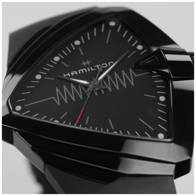 De Hamilton Ventura werd ontworpen in het atoomtijdperk, toen ruimtevaart en sciencefiction een grote invloed hadden op kunst en design. Het ontwerp van de Ventura XXL Bright is echter helemaal van deze tijd; het XXL-formaat van het horloge is perfect voor de mode en mannen van de 21e eeuw. De wijzerplaat van het horloge verwijst naar het historische feit dat de Ventura 's werelds eerste quartz horloge op batterijen was, maar het volledig zwarte ontwerp met geprononceerde tredes in de kast is veel moderner, zoals een 'stealth' straaljager. De wijzerplaat met verlichting voegt nog iets extra toe aan dit opwindende horloge.