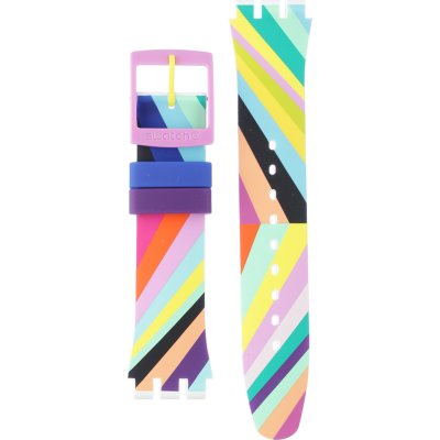 Op deze pagina vindt u banden voor Swatch Standard large horloges. De band van dit type Swatch horloge wordt niet bevestigd met push pins zoals bij reguliere horloges. Het heeft een band met uitsparingen van 19,7 mm breed die door een metalen pin op zijn plaats wordt gehouden. De uiteinden van de band hebben uitsteeksels die corresponderen met de vorm van de kast. Alleen de banden op deze pagina passen aan uw Swatch Standard Large.