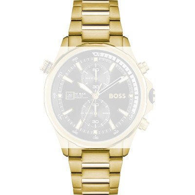 Dit Hugo Boss horlogebandje is gemaakt van roestvrij staal en wordt aan het horloge bevestigd door middel van bandpennen. De band heeft een breedte van 24 mm en wordt gesloten door middel van een vouwsluiting met drukknoppen. De band heeft geen rechte aanzet wat betekent dat deze band alleen geschikt is voor de horloges die hieronder worden vermeld.