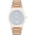 Dit Hugo Boss horlogebandje is gemaakt van roestvrij staal en wordt aan het horloge bevestigd door middel van stalen pennen. De band heeft een breedte van 20 mm en wordt gesloten door middel van een vouwsluiting met drukknoppen. De band heeft geen rechte aanzet wat betekent dat deze band alleen geschikt is voor de horloges die hieronder worden vermeld.