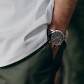 Dit Jaguar horloge heeft een kast gemaakt van Roestvrijstaal met een diameter van 43 mm en is voorzien van een leren band. In de kast bevindt zich een Ronda kwaliteitsuurwerk en is afgewerkt met Saffierglas.
