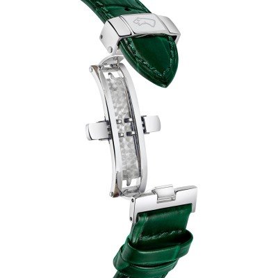 Dit Jaguar horloge heeft een kast gemaakt van Roestvrijstaal met een diameter van 40 mm en is voorzien van een Leer op siliconen band. In de kast bevindt zich een Ronda kwaliteitsuurwerk en is afgewerkt met Saffierglas.