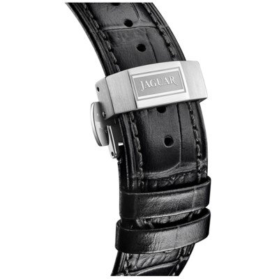 Dit Jaguar horloge heeft een kast gemaakt van Roestvrijstaal met een diameter van 41 mm en is voorzien van een leren band. In de kast bevindt zich een Soprod kwaliteitsuurwerk en is afgewerkt met Saffierglas.