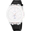 Dit Jaguar horlogebandje is gemaakt van leer op siliconen en wordt aan het horloge bevestigd door middel van stalen pennen. De band heeft een breedte van 28 mm en wordt gesloten door middel van een gesp. De band heeft geen rechte aanzet wat betekent dat deze band alleen geschikt is voor de horloges die hieronder worden vermeld.