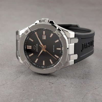Dit Jaguar horloge heeft een kast gemaakt van Roestvrijstaal met een diameter van 44 mm en is voorzien van een Rubber band. In de kast bevindt zich een Ronda kwaliteitsuurwerk en is afgewerkt met Saffierglas.