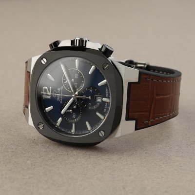Dit Jaguar horloge heeft een kast gemaakt van Roestvrijstaal met een diameter van 42.9 mm en is voorzien van een Rubber band. In de kast bevindt zich een Ronda kwaliteitsuurwerk en is afgewerkt met Saffierglas.