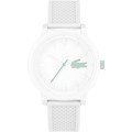 Dit Lacoste horlogebandje is gemaakt van siliconen en wordt aan het horloge bevestigd door middel van bandpennen. De band heeft een breedte van 22 mm en wordt gesloten door middel van een gesp. De band heeft een rechte aanzet wat betekent dat deze band geschikt is voor alle Lacoste horloges met een rechte aanzet.