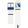 Dit Lacoste horlogebandje is gemaakt van siliconen en wordt aan het horloge bevestigd door middel van bandpennen. De band heeft een breedte van 22 mm en wordt gesloten door middel van een gesp. De band heeft een rechte aanzet wat betekent dat deze band geschikt is voor alle Lacoste horloges met een rechte aanzet.