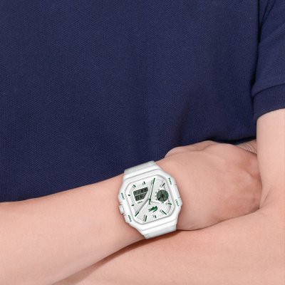 Dit Lacoste horloge heeft een kast gemaakt van Kunsthars met een diameter van 44 mm en is voorzien van een Rubber band. In de kast bevindt zich een Bao Jie kwaliteitsuurwerk en is afgewerkt met Mineraalglas.