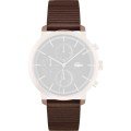 Dit Lacoste horlogebandje is gemaakt van leer en wordt aan het horloge bevestigd door middel van bandpennen. De band heeft een breedte van 21 mm en wordt gesloten door middel van een gesp. De band heeft een rechte aanzet wat betekent dat deze band geschikt is voor alle Lacoste horloges met een rechte aanzet.