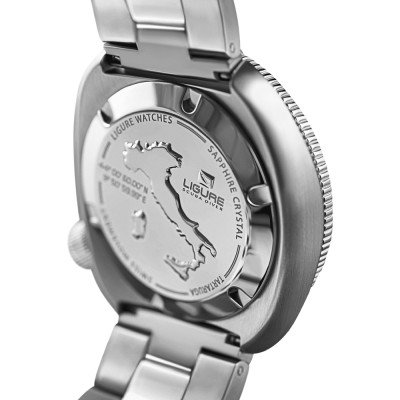 In de Middellandse Zee voor de kust van Ligurië komen veel soorten schildpadden voor. De vorm van hun schild inspireerde het ontwerp van het Ligure Tartaruga horloge. Net als bij een schildpad overlapt de kast een beetje de hals, of in dit geval de band, waardoor het horloge zijn aparte look krijgt. Een ander typisch kenmerk van Ligure horloges zijn de opgelegde indexen gevuld met Zwitserse Super LumiNova X-grade met een, technisch zeer moeilijk uit te voeren, rood kleuraccent. De indexen gaan vergezeld van stevige zwaardvormige wijzers in dezelfde stijl. Reis in stijl naar 'Bella Italia' met dit praktische en verfijnde duikhorloge.