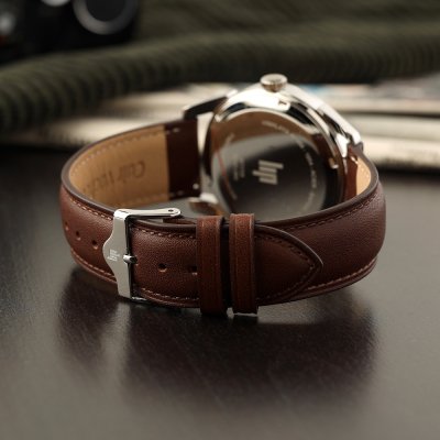 Dit LIP horloge heeft een kast gemaakt van Roestvrijstaal met een diameter van 40 mm en is voorzien van een leren band. In de kast bevindt zich een Ronda kwaliteitsuurwerk en is afgewerkt met K1 Mineraalglas.