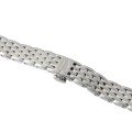 Dit Longines horlogebandje is gemaakt van roestvrij staal en wordt aan het horloge bevestigd door middel van bandpennen. De band heeft een breedte van 10 mm en wordt gesloten door middel van een vlindersluiting met drukknoppen. De band heeft geen rechte aanzet wat betekent dat deze band alleen geschikt is voor de horloges die hieronder worden vermeld.