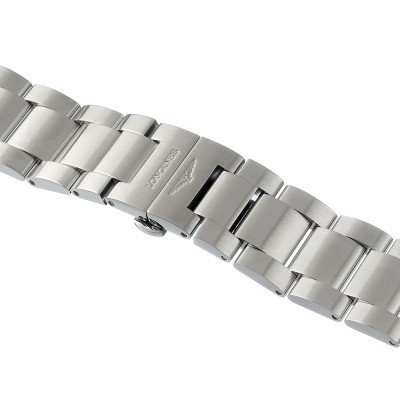 Dit Longines horlogebandje is gemaakt van roestvrij staal en wordt aan het horloge bevestigd door middel van bandpennen. De band heeft een breedte van 22 mm en wordt gesloten door middel van een vlindersluiting met drukknoppen. De band heeft geen rechte aanzet wat betekent dat deze band alleen geschikt is voor de horloges die hieronder worden vermeld.