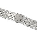 Dit Longines horlogebandje is gemaakt van roestvrij staal en wordt aan het horloge bevestigd door middel van bandpennen. De band heeft een breedte van 21 mm en wordt gesloten door middel van een vlindersluiting met drukknoppen. De band heeft geen rechte aanzet wat betekent dat deze band alleen geschikt is voor de horloges die hieronder worden vermeld.