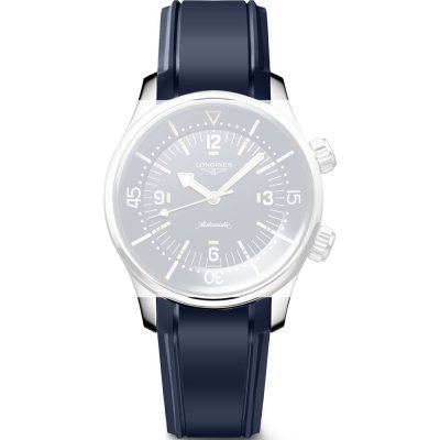 Dit Longines horlogebandje is gemaakt van rubber en wordt aan het horloge bevestigd door middel van bandpennen. De band heeft een breedte van 20 mm. De band heeft geen rechte aanzet wat betekent dat deze band alleen geschikt is voor de horloges die hieronder worden vermeld.