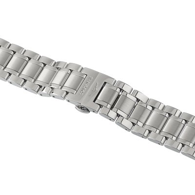 Dit Longines horlogebandje is gemaakt van roestvrij staal en wordt aan het horloge bevestigd door middel van bandpennen. De band heeft een breedte van 21 mm en wordt gesloten door middel van een vlindersluiting met drukknoppen. De band heeft geen rechte aanzet wat betekent dat deze band alleen geschikt is voor de horloges die hieronder worden vermeld.