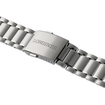 Dit Longines horlogebandje is gemaakt van roestvrij staal en wordt aan het horloge bevestigd door middel van bandpennen. De band heeft een breedte van 22 mm en wordt gesloten door middel van een vouwsluiting met drukknoppen. De band heeft geen rechte aanzet wat betekent dat deze band alleen geschikt is voor de horloges die hieronder worden vermeld.