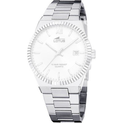 Dit Lotus horlogebandje is gemaakt van roestvrij staal en wordt aan het horloge bevestigd door middel van stalen pennen. De band heeft een breedte van 23 mm en wordt gesloten door middel van een vouwsluiting met drukknoppen. De band heeft geen rechte aanzet wat betekent dat deze band alleen geschikt is voor de horloges die hieronder worden vermeld.