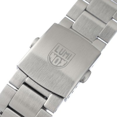 Dit Luminox horlogebandje is gemaakt van roestvrij staal en wordt aan het horloge bevestigd door middel van bandpennen. De band heeft een breedte van 22 mm en wordt gesloten door middel van een vouwsluiting met drukknoppen. De band heeft geen rechte aanzet wat betekent dat deze band alleen geschikt is voor de horloges die hieronder worden vermeld.