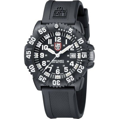 Alleen het beste is goed genoeg voor de U.S. Navy Seals en dat is waarom het Luminox Colormark horloge A.3051 aan de hoogste standaarden voldoet. Het horloge heeft een carbon verstevigde kast met felwitte markeringen voor extra zichtbaarheid en het Luminox verlichtingssysteem dat tot 25 jaar gegarandeerd is.