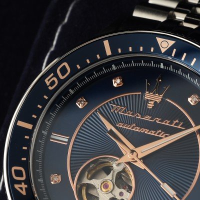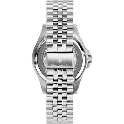 Dit Maserati horloge heeft een kast gemaakt van Roestvrijstaal met een diameter van 44 mm en is voorzien van een Roestvrijstaal band. In de kast bevindt zich een Seiko Instruments Inc. kwaliteitsuurwerk en is afgewerkt met Saffierglas.