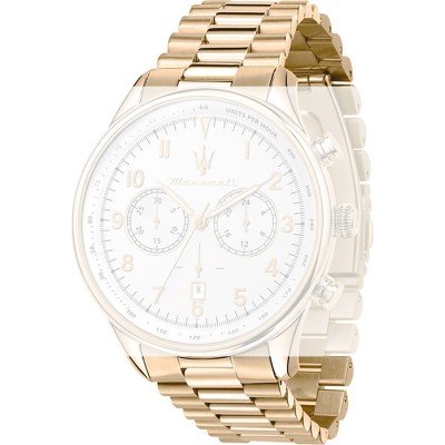 Dit Maserati horlogebandje is gemaakt van roestvrij staal en wordt aan het horloge bevestigd door middel van bandpennen. De band heeft een breedte van 22 mm en wordt gesloten door middel van een vouwsluiting met drukknoppen. De band heeft geen rechte aanzet wat betekent dat deze band alleen geschikt is voor de horloges die hieronder worden vermeld.