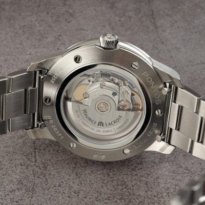 De Pontos Automatic Day-Date is een stijlvol modern-klassiek horloge met een retro-uitstraling. Typische Maurice Lacroix ontwerpkenmerken zijn de getrapte lugs, de afgeronde taps toelopende wijzers en de subtiele gebogen kroonbeschermer. De sunray wijzerplaat is prachtig gelaagd met een minuten track in het midden, alleen onderbroken door een verzonken datumvenster op 6 uur. Bovenaan de wijzerplaat vinden we een waaiervormig dagvenster. Het automatische Zwitserse SW200-uurwerk met customized oscillerend gewicht is te bewonderen via de achterkant van de tentoonstellingskast. Over het geheel genomen is dit een elegant en modern Zwitsers horloge voor elke dag.