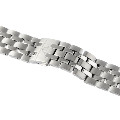 Dit Maurice Lacroix horlogebandje is gemaakt van roestvrij staal en wordt aan het horloge bevestigd door middel van bandpennen. De band heeft een breedte van 20 mm en wordt gesloten door middel van een vouwsluiting met drukknoppen. De band heeft geen rechte aanzet wat betekent dat deze band alleen geschikt is voor de horloges die hieronder worden vermeld.