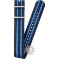 Dit Maurice Lacroix horlogebandje is gemaakt van textiel en wordt aan het horloge bevestigd door middel van bandpennen. De band heeft een breedte van 22 mm. De band heeft een rechte aanzet wat betekent dat deze band geschikt is voor alle Maurice Lacroix horloges met een rechte aanzet.