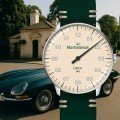Het Limited to 100 genummerde Neo J.E Meistersinger horloge is typisch Brits met zijn ontwerp geïnspireerd op de iconische Jaguar E-Type auto. Elk horloge wordt geleverd in een doos met een 1:18 schaalmodel van de Jaguar E-Type Cabrio. De slanke kast met een diameter van 36 mm en het koepelvormige saffierglas maken dat de Neo J.E eruitziet alsof hij zo uit een James Bond-film uit de jaren zestig komt! Bovendien verwijst de crèmekleurige wijzerplaat naar het interieur en het dak van de E-Type. En het British Racing Green van het lakwerk van de auto komt terug in de leren band, de details van de wijzerplaat en de enkele, groene wijzer. De cognackleurige vijfminutenmarkeringen zijn een knipoog naar het originele houten stuurwiel van de Jaguar E-Type. En de zilveren cijfers tenslotte doen denken aan de verchroomde velgen van de auto en geven de wijzerplaat extra diepte. Het horloge wordt aangedreven door een voor Meistersinger aangepast Zwitsers Sellita SW200 automatisch uurwerk met een gangreserve van 38 uur.
