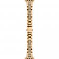 Dit Michael Kors horlogebandje is gemaakt van roestvrij staal en wordt aan het horloge bevestigd door middel van schuif. De band heeft een breedte van 22 mm en wordt gesloten door middel van een vouwsluiting met drukknoppen. De band heeft geen rechte aanzet wat betekent dat deze band alleen geschikt is voor de horloges die hieronder worden vermeld.