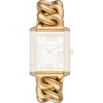 Dit Michael Kors horlogebandje is gemaakt van roestvrij staal en wordt aan het horloge bevestigd door middel van bandpennen. De band heeft een breedte van 22 mm en wordt gesloten door middel van een sieraadsluiting. De band heeft geen rechte aanzet wat betekent dat deze band alleen geschikt is voor de horloges die hieronder worden vermeld.